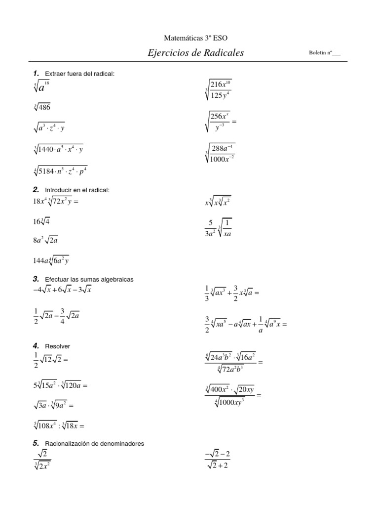 Reseñas OPERACIONES CON RADICALES EJERCICIOS RESUELTOS Y PARA RESOLVER PDF Nuevo