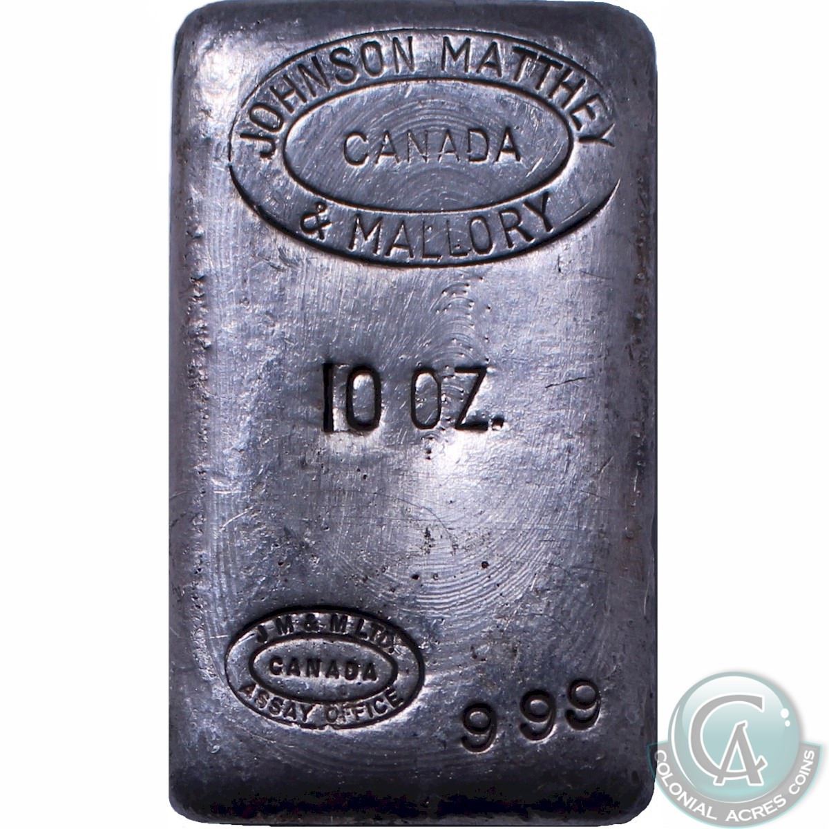 Ver **VINTAGE** JOHNSON MATTHEY & MALLORY 10 oz SILVER BAR .999 Fine OLD actualizar