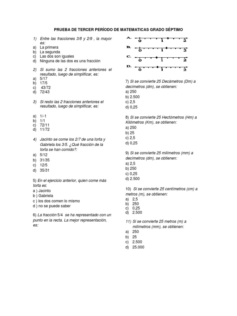Imprescindible PRUEBA DE PERÍODO DE MATEMÀTICAS GRADO SÉPTIMO actualizado