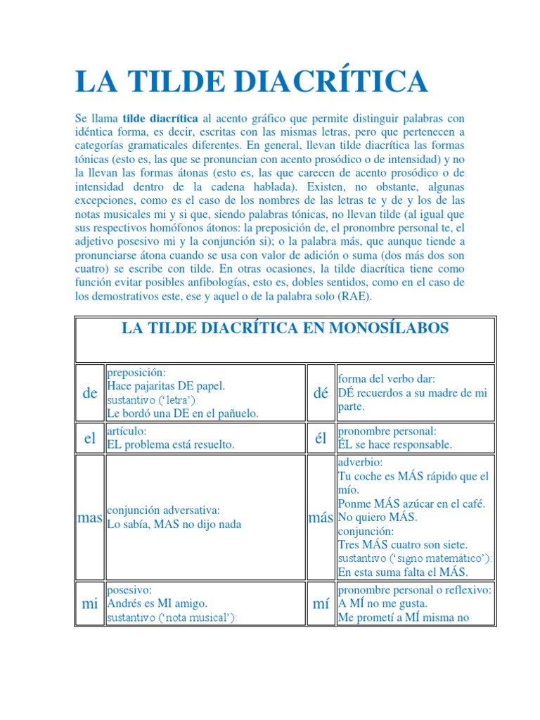 Acerca de LA TILDE DIACRÍTICA | Palabra | Reglas viral
