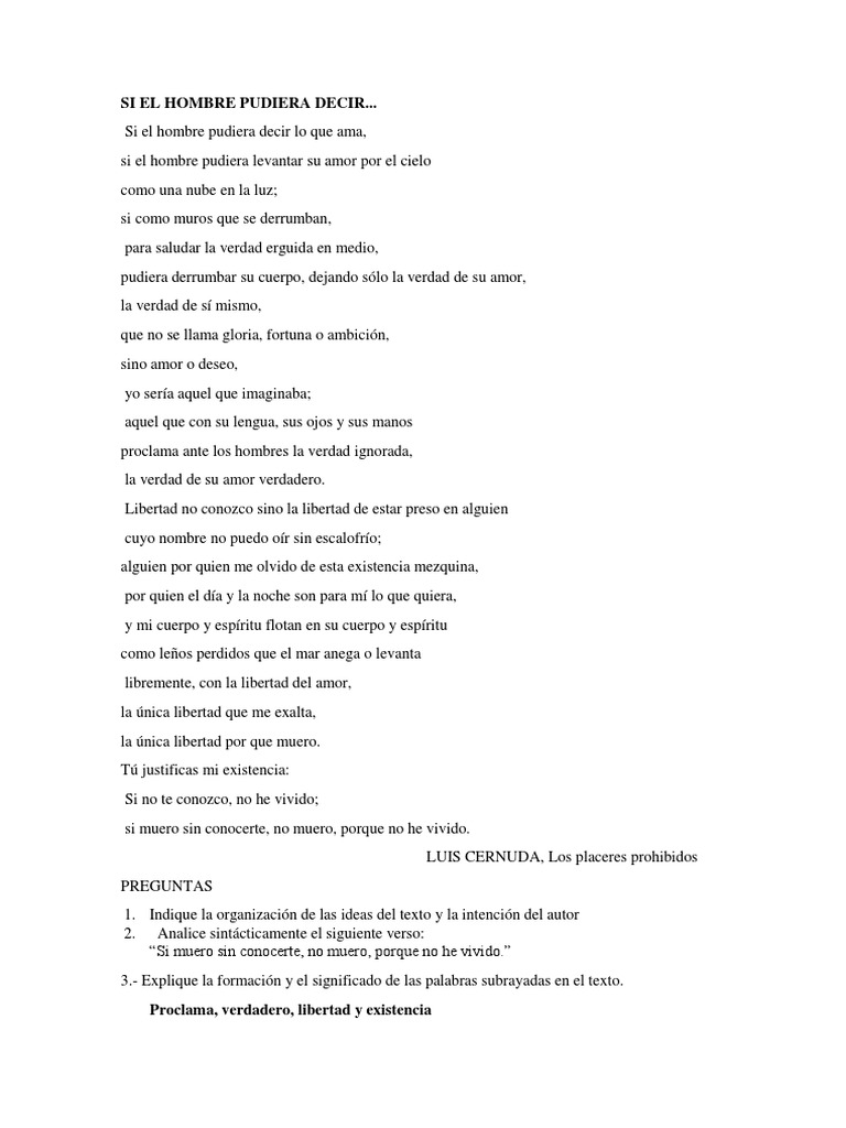Si El Hombre Pudiera Decir Comentario de Luis Cernuda | PDF más