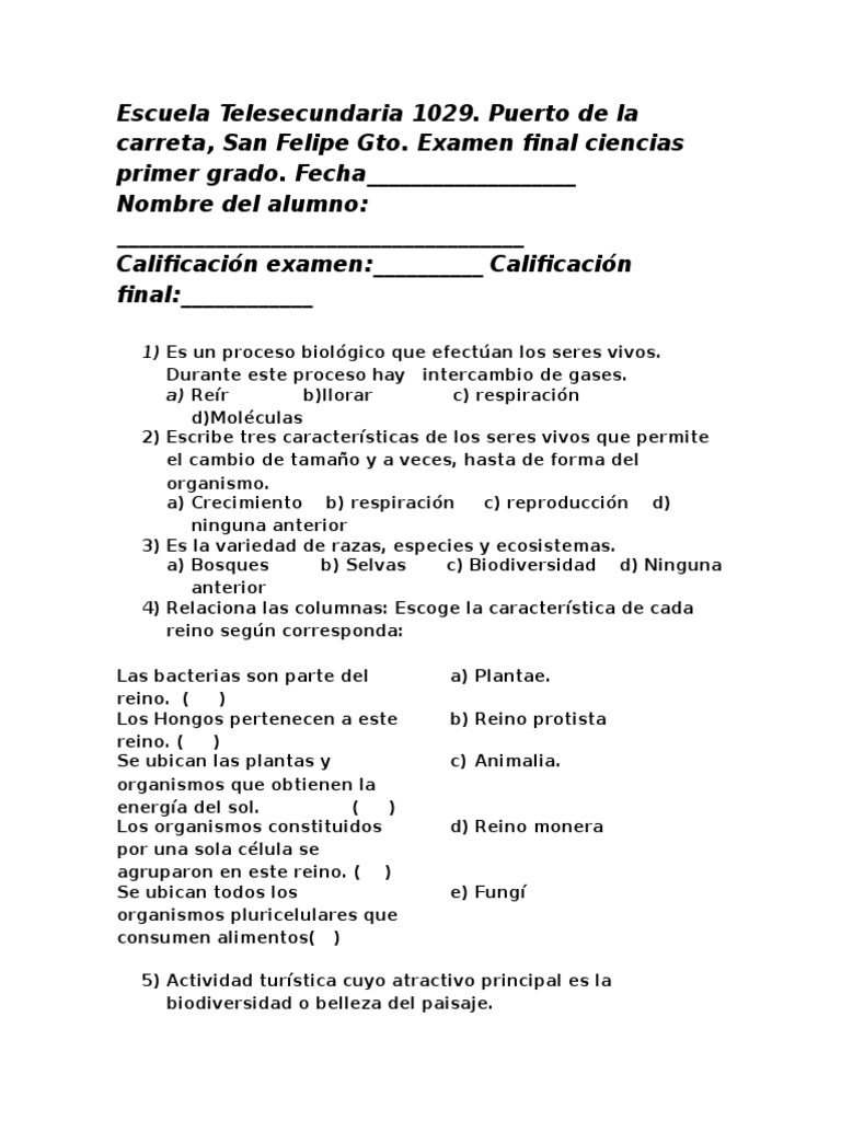 Temas Examen Final de Ciencias Primer Grado Secundaria | PDF | Infección tendencias