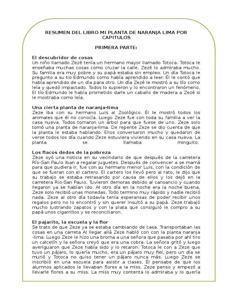 Acerca de Resumen Del Libro Mi Planta De Naranja Lima Por Capítulos.docx | Ocio volviéndose viral