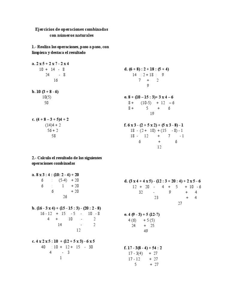 Acerca de Ejercicios de operaciones combinadas con números naturales (primaria) Nuevo