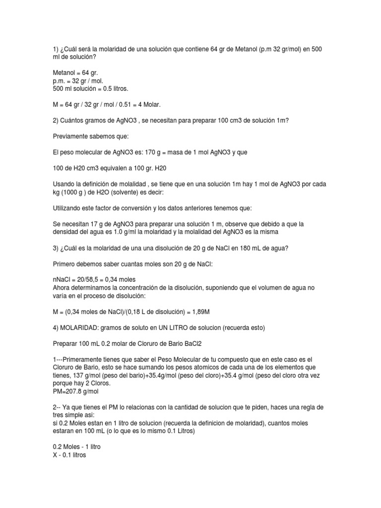 EJERCICIOS DE MOLARIDAD RESUELTOS PDF más