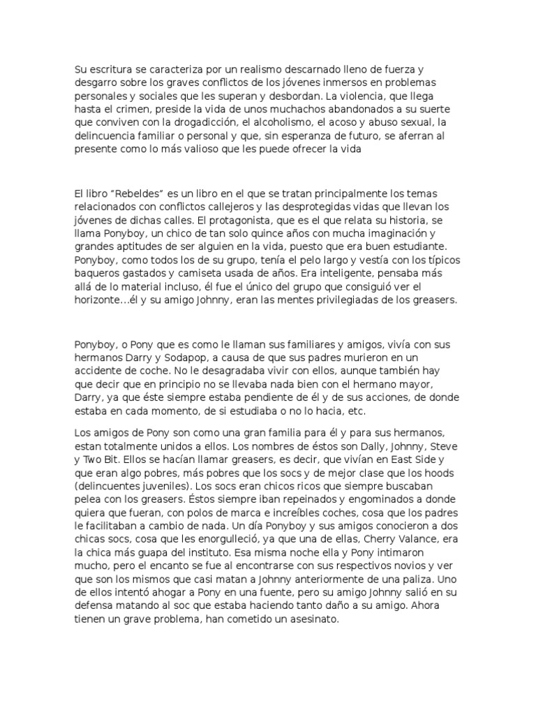 Mira RESUMEN DEL LIBRO “REBELDES” DE SUSAN E. HINTON | Delito | Verdad