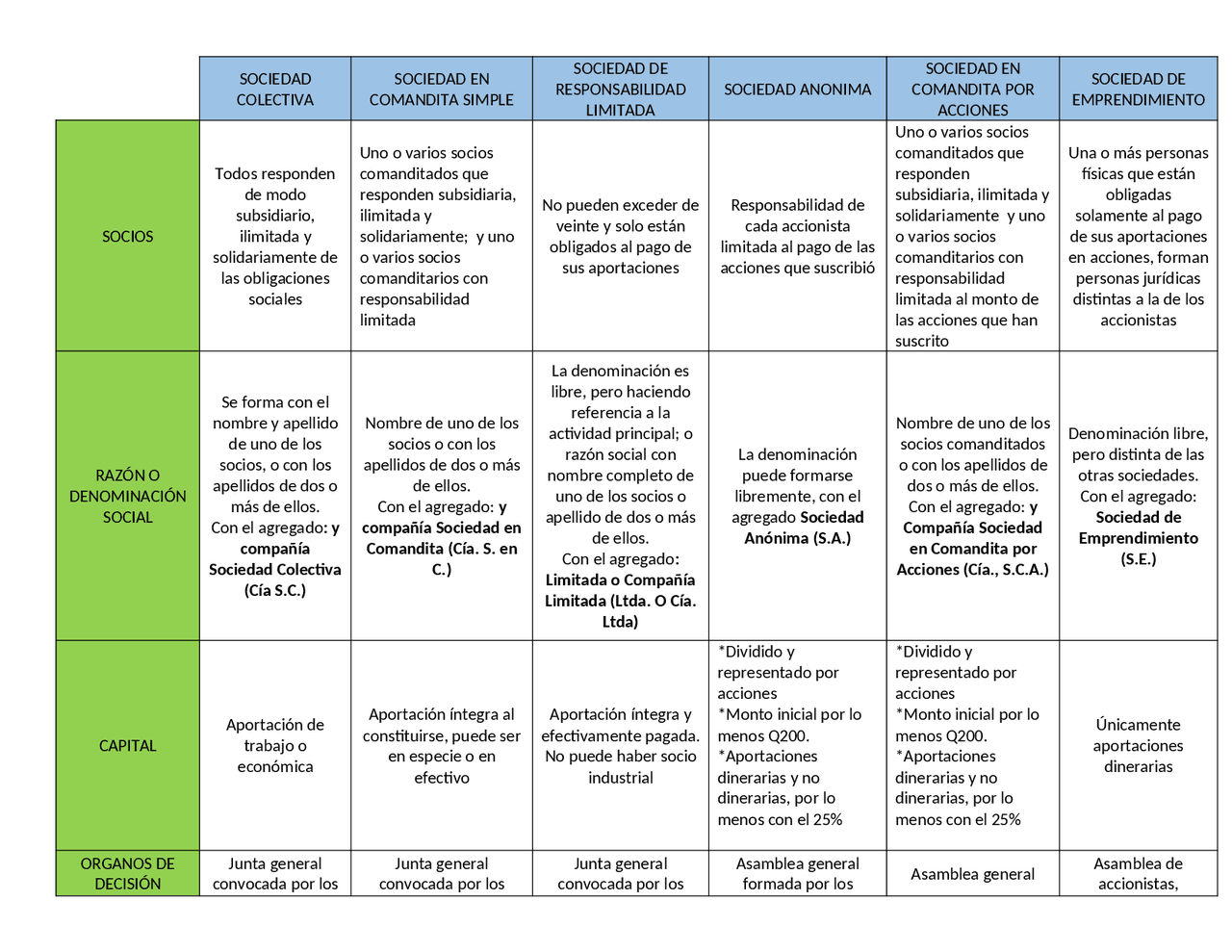 Viral Cuadro Comparativo – Sociedades Mercantiles en Colombia | Instituciones