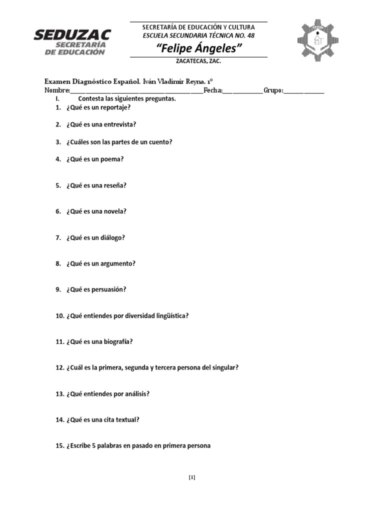 Viral Examen español primero de secundaria primer bimestre.pdf | Minotauro actualizado