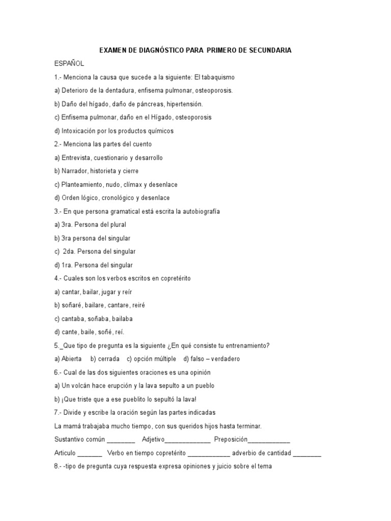 Fotos Examen de diagnostico de español 1 er grado de secundaria tendencias