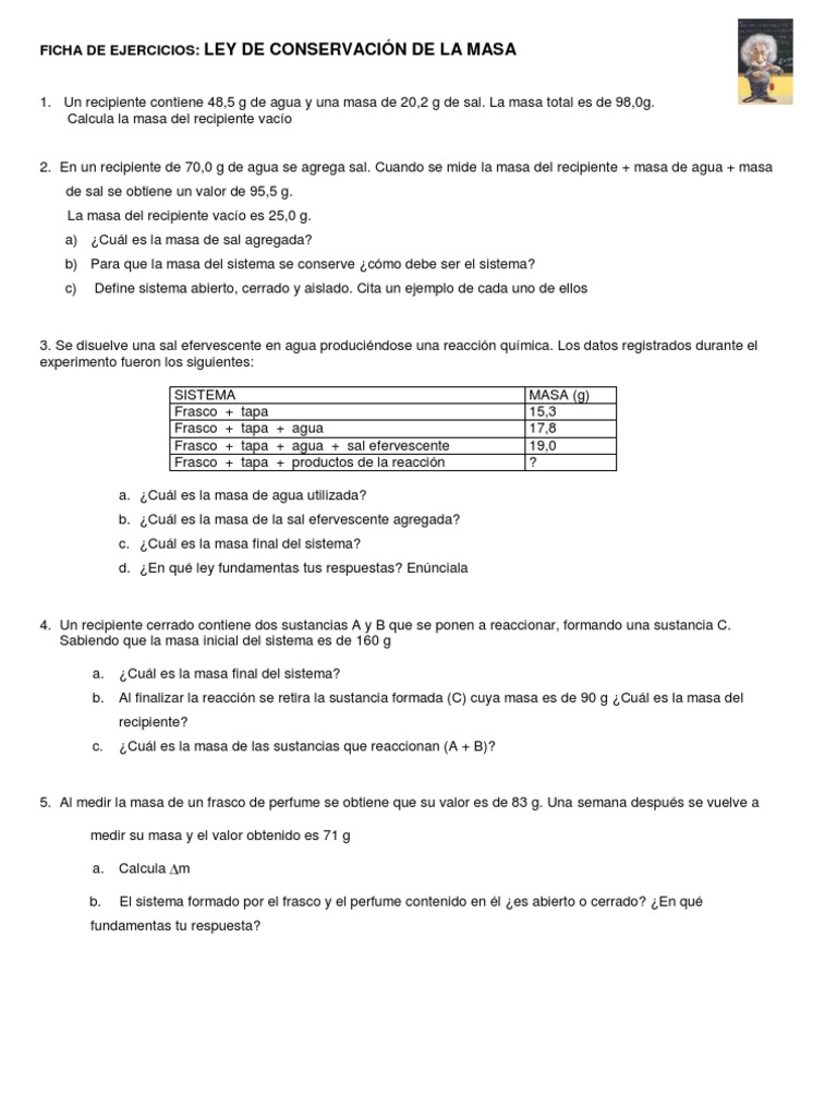 Asunto Ley de Conservación de la Masa o de Lavoisier: Ejercicios.