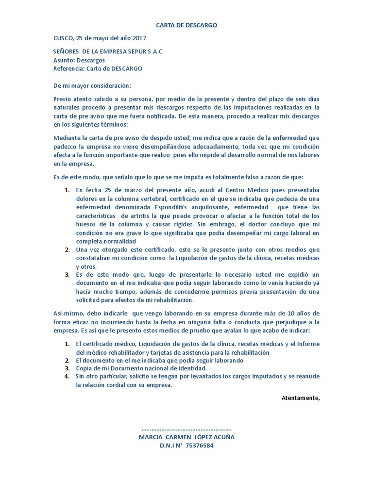 Carta De Descargo actualizado para usted
