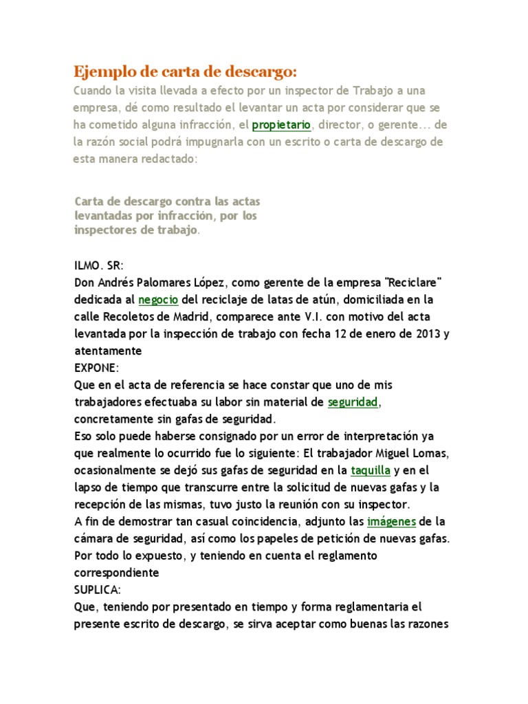 Ejemplo de Carta de Descargo viral