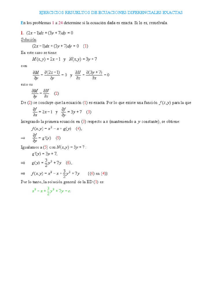 Más sobre Ecuaciones Diferenciales Exactas Ejercicios Resueltos último