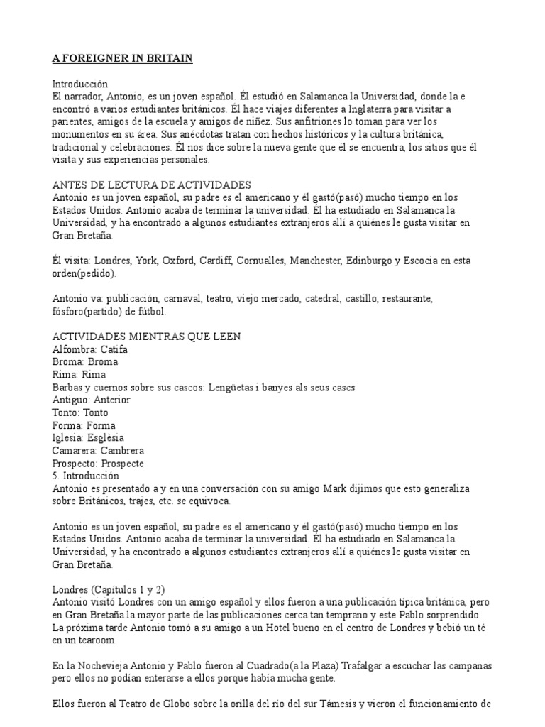 He came on an exchange with a school from edinburgh. He was in spain for three weeks; A foreigner in britain clasificado en inglés escrito el 8 de diciembre de 2009 en español con un tamaño de 3,77 kb antonio is a spanish university student. At university he made english. A foreigner in britain un extranjero en bretaña by ramón ybarra rubio and fiona smith y traducido por miguel mauri llinares. Hola, soy miguel mauri llinares y. A foreigner in britain the book was good and was interesting, but there are some pieces of the book is very descriptive, and it didn't catch my atention. In short, the book is good. A foreigner in britain autores fiona smith, ramón ybarra rubio género otros antonio is a young spaniard who loves britain, has many friends there and visits the country regurlarly.