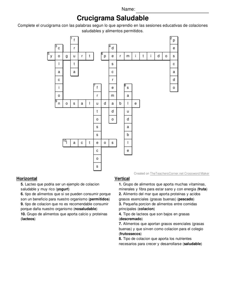 Aquí Crucigrama Saludable