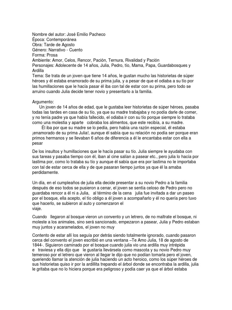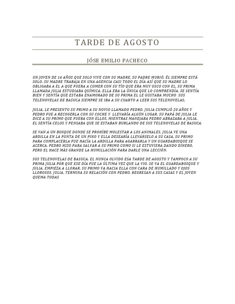 Ver (DOC) TARDE DE AGOSTO, cuento de José Emilio Pacheco. | Rosario actualizado
