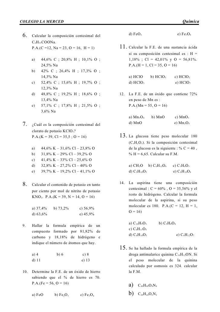 Fotos (DOC) Ejemplos de Composición Centesimal | kim TICSE – Academia.edu