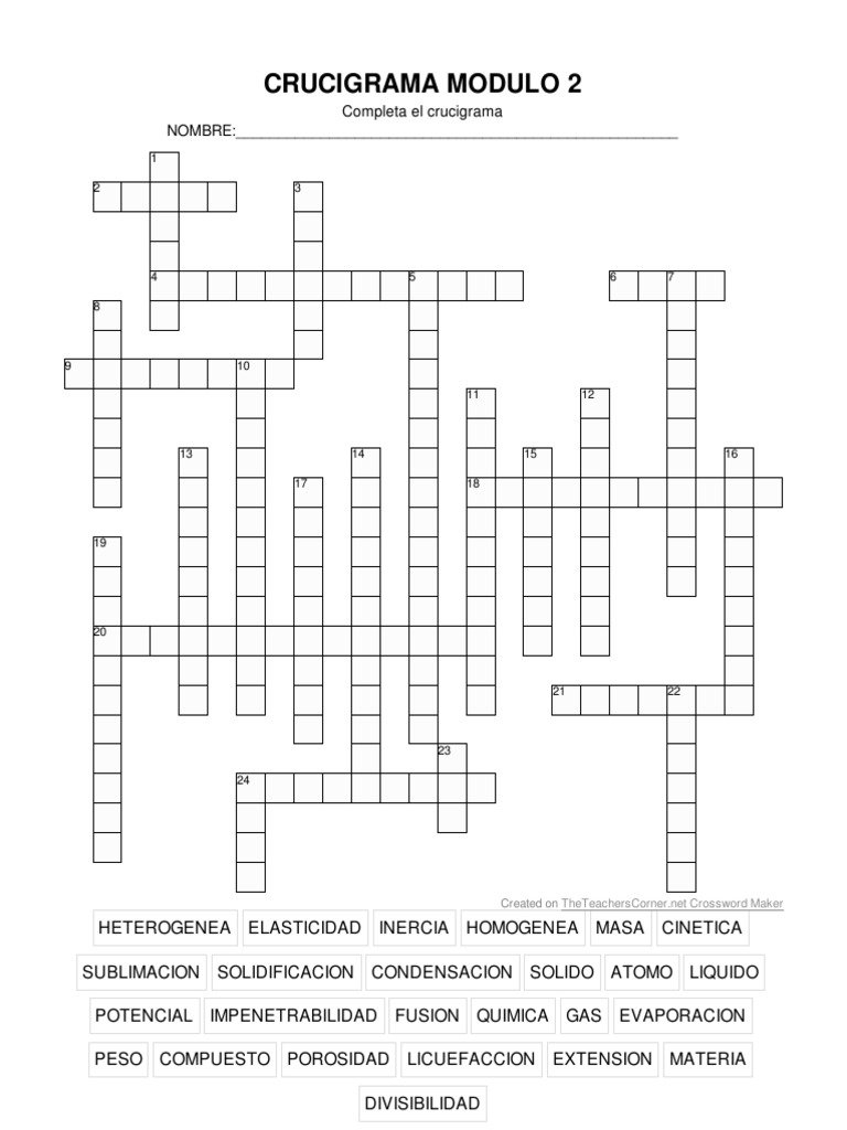 Crucigrama Modulo 2: Completa el crucigrama NOMBRE