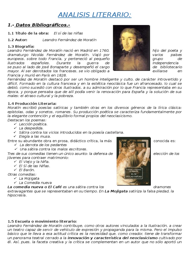ANÁLISIS LITERARIO DE EL SI DE LAS NIÑAS | Ficción y literatura tendencias