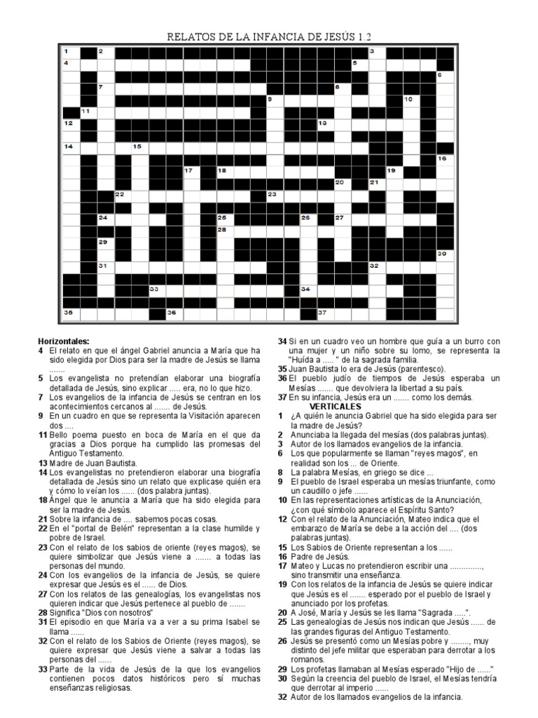 Veamos Crucigrama Infancia de Jesús | Mesías | María, madre de Jesús Último
