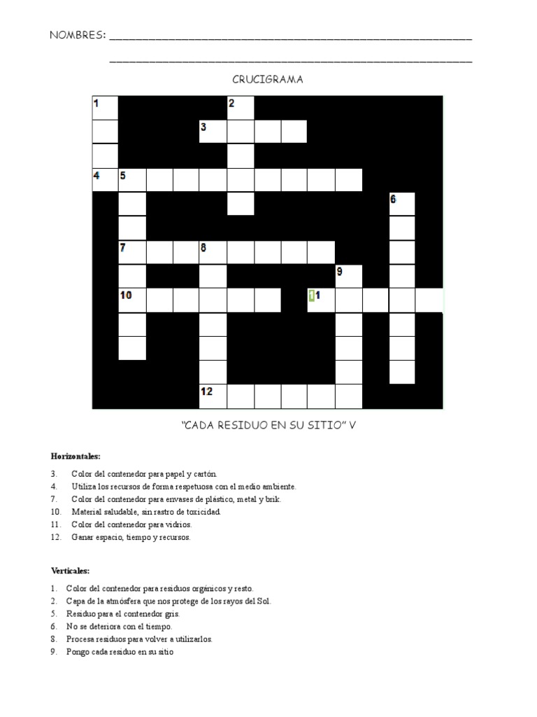 Último Crucigrama Del Medio Ambiente Nuevo