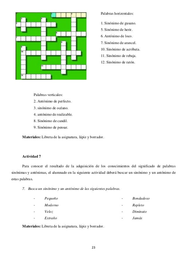 Acerca de SINONIMIA Y ANTONIMIA más
