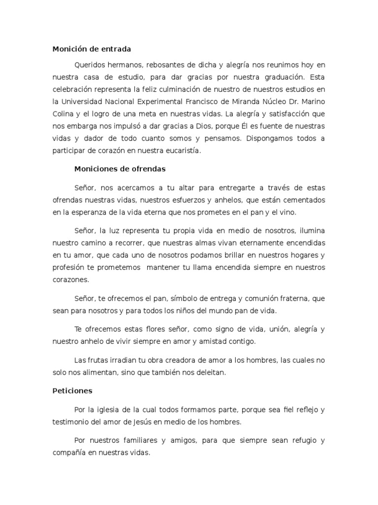 Como Hacer Una Monicion De Entrada Para Misa – Idea de Hacer Último