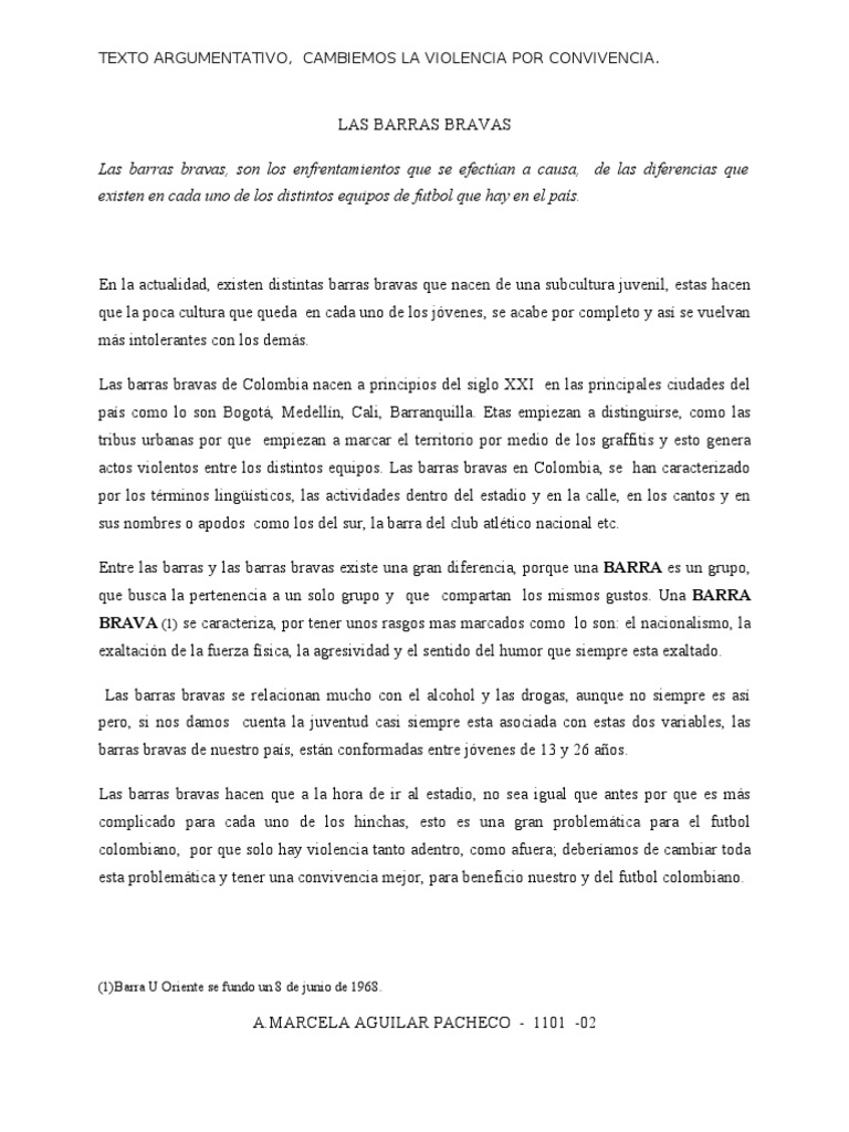 Discusión TEXTO ARGUMENTATIVO | Colombia | Asociación de Futbol más