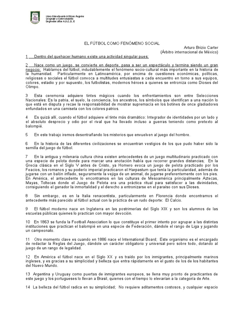 Ver 1. ENSAYO DE UN ALUMNO. LECTURA GRAL: El estancamiento del fútbol mexicano. Último