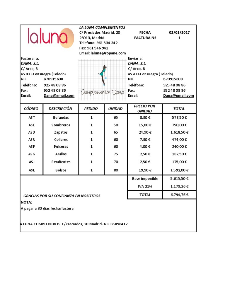 Otras descripciones de Factura La Luna