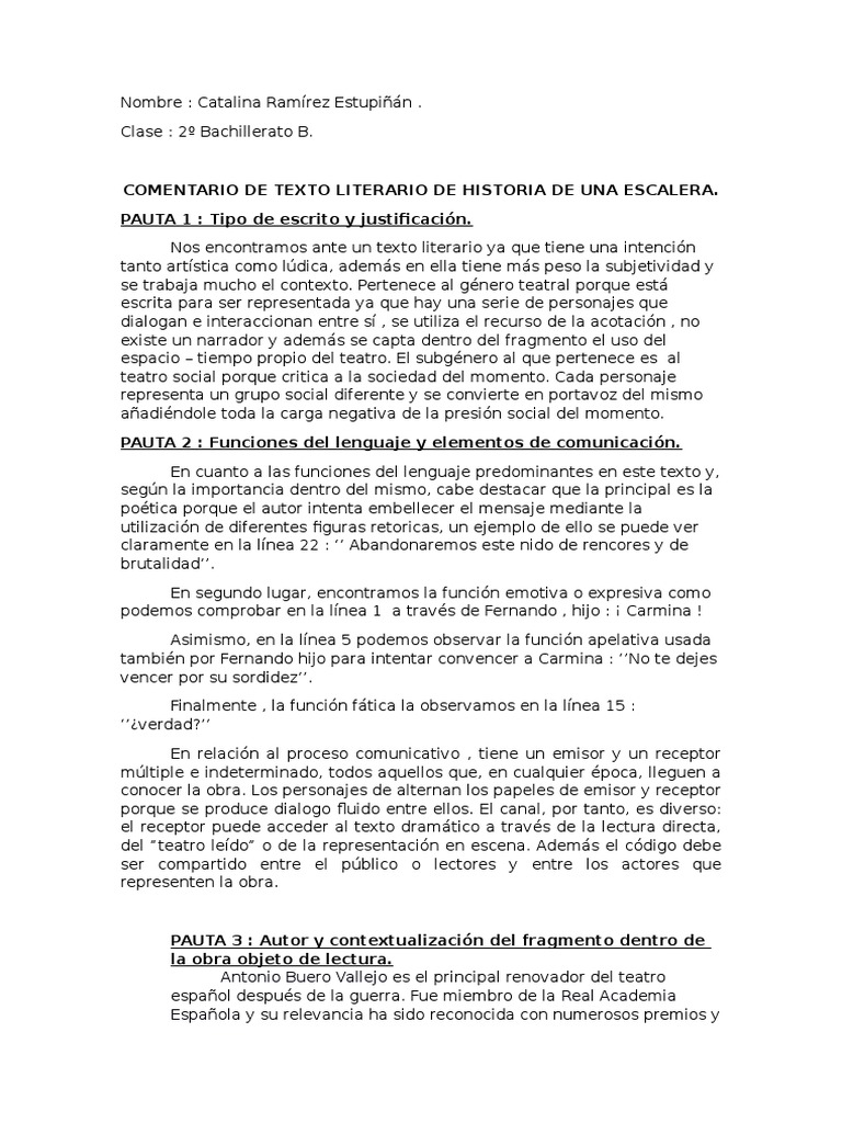 Solución a la pregunta 4b (historia de una escalera, de antonio buero vallejo) del examen de lengua de selectividad (andalucía) categorías: Selectividad, pevau a continuación pasamos a resolver una de las dos propuestas de la pregunta 4b de uno de los modelos del examen de lengua de selectividad del curso 2020. Hay que recordar que en la pregunta 4b de. Ubica el texto dentro de historia de una escalera se encuentra en el primer acto, que funciona como presentación de los diferentes personajes.