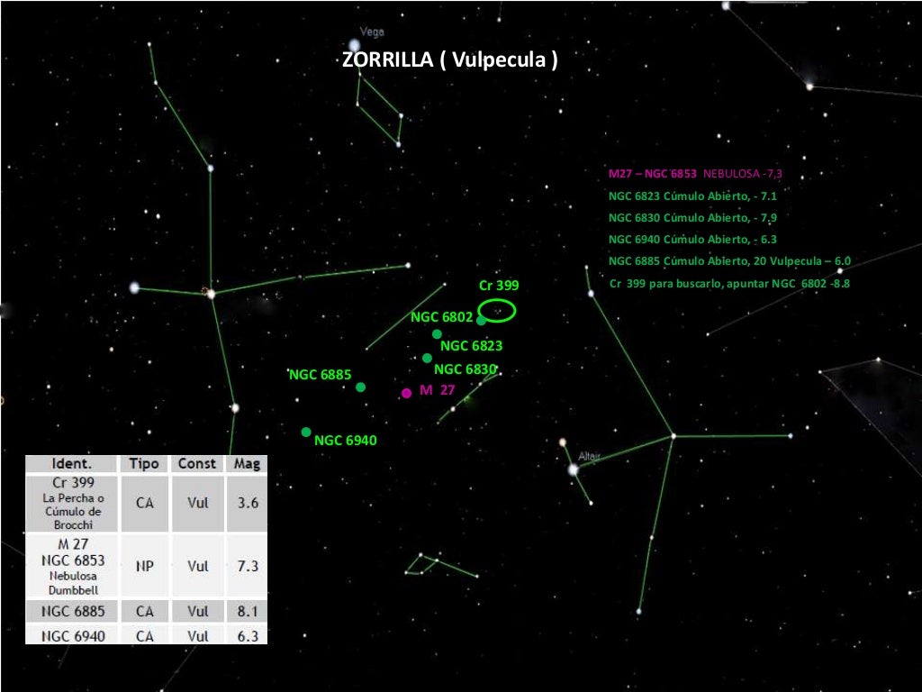 Veamos Constelacion cisne lira aguila delfin vulpecula flecha zorrilla popular