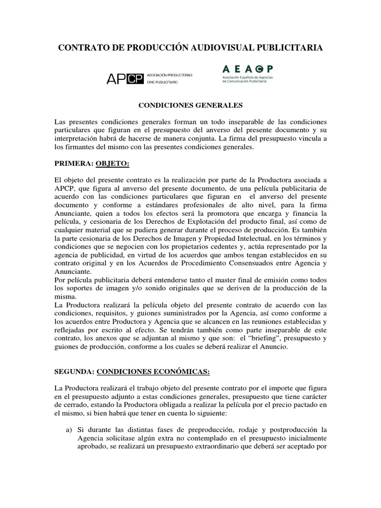 Imprescindible Modelo Contrato Produccion Audiovisual