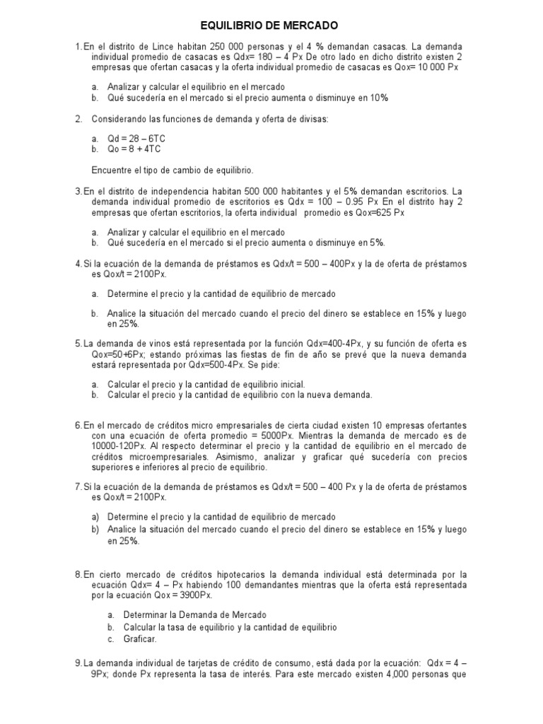 Ver EJERCICIO EQUILIBRIO DE MERCADO Último