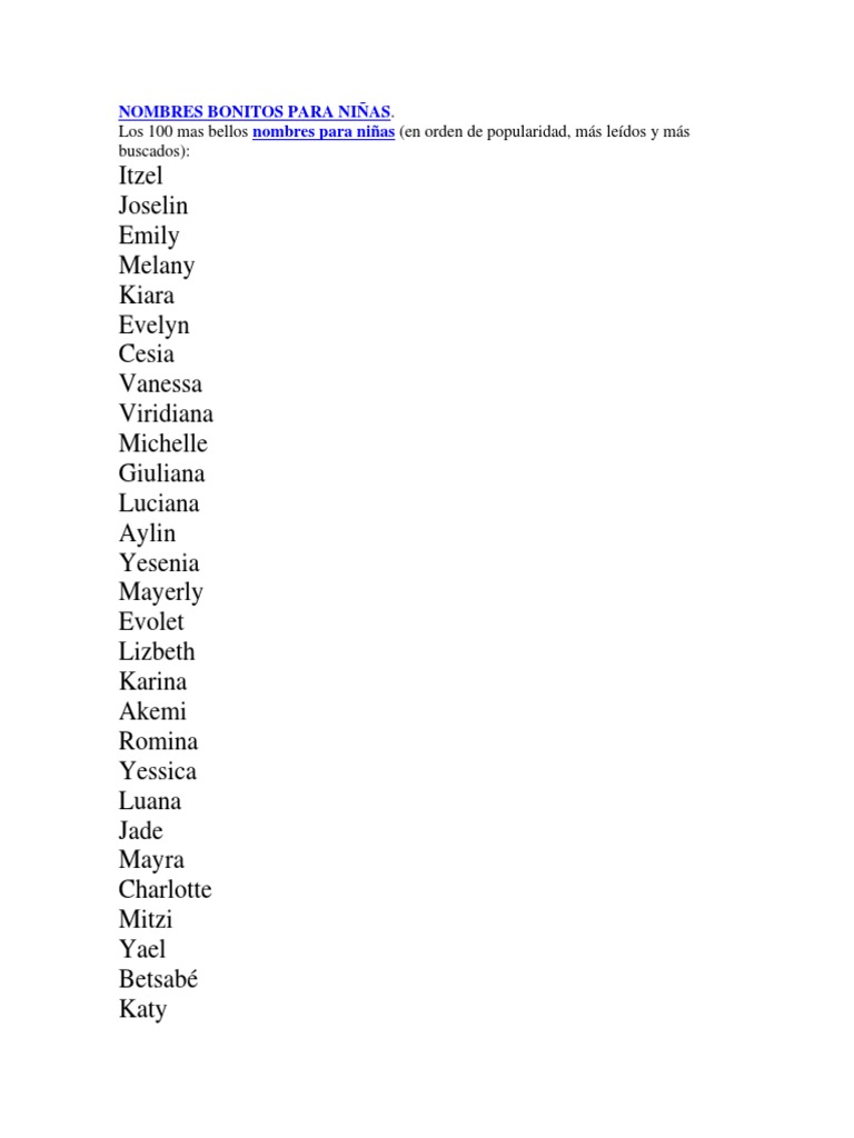 Fotos Nombres Bonitos Para Niñas Último