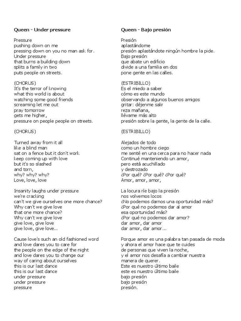 Temas Queen – Under Pressure Letra Español | PDF Último