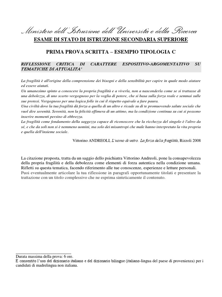 Último Prima prova di Italiano -Tipologia C: Tema di attualità – Maturità Último