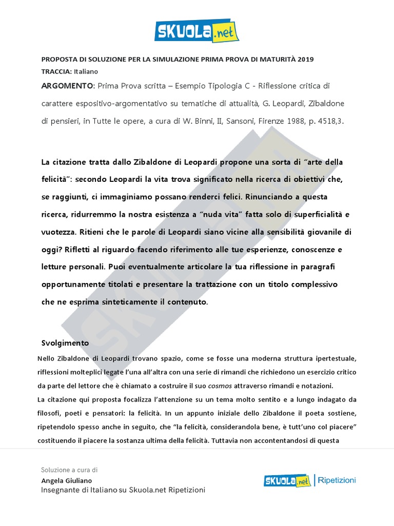 Veamos Tipologia C, tema attualità felicità- Leopardi, Zibaldone Di Pensieri actualizar