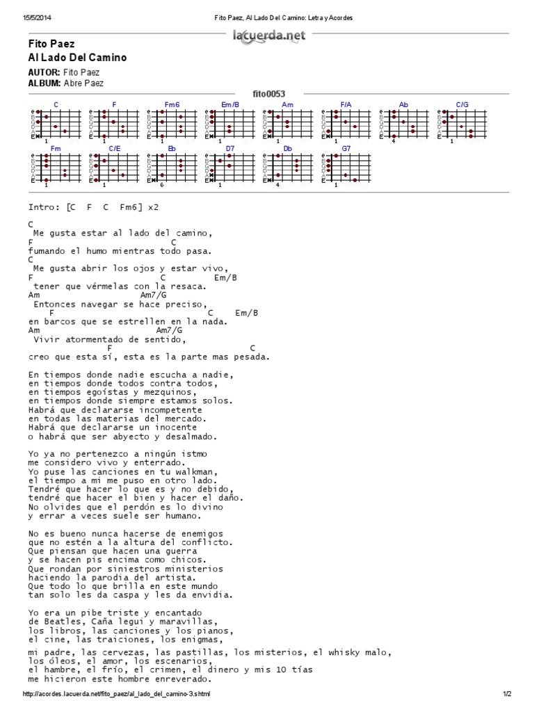 Artículos Fito Paez, Al Lado Del Camino_ Letra y Acordes tendencias