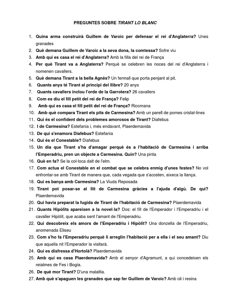 Noticias TIRANT LO BLANC resum AMOR I EROTISME popular