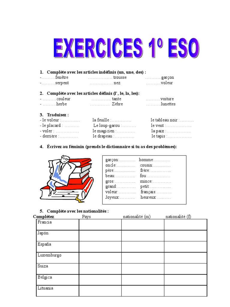 Artículos Ejercicios Francés 1º ESO | PDF | Grammaire | Langues actualizar