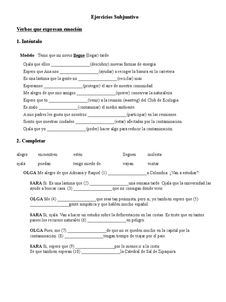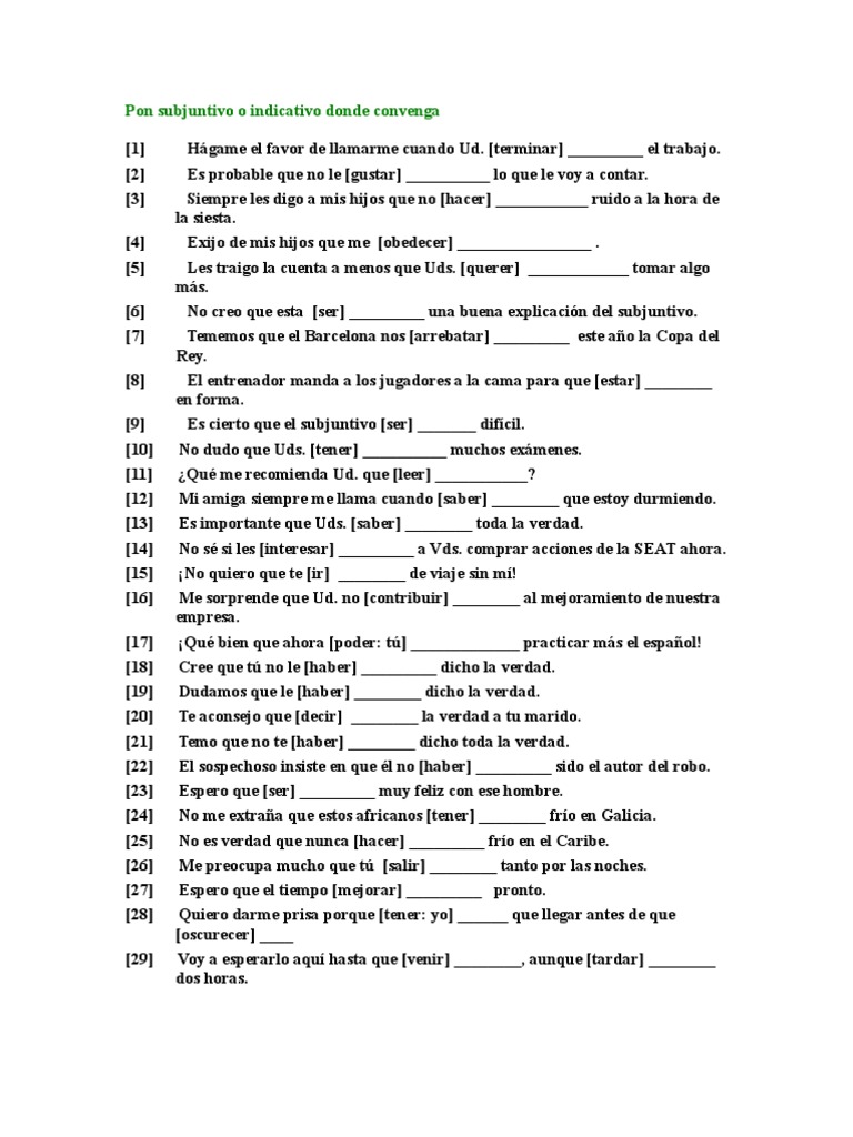 Ver Ejercicios Complementarios Español – Presente de Subjuntivo | Spanish tendencias