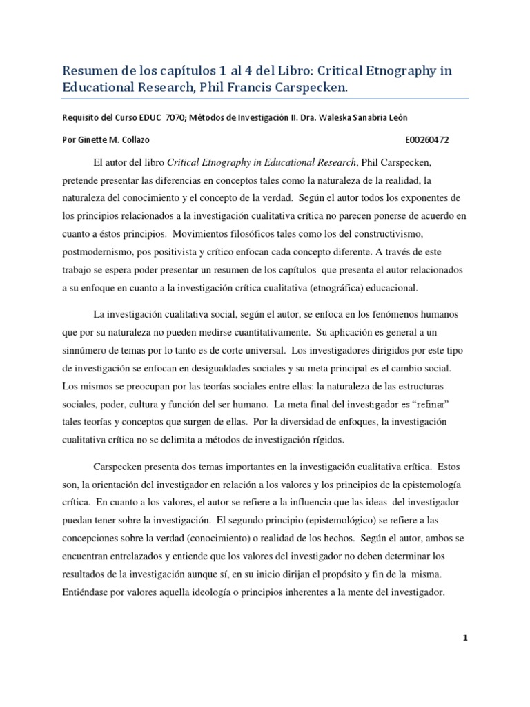Noticias Resumen de los capítulos 1 al 4 del Libro carspecken | Verdad volviéndose viral