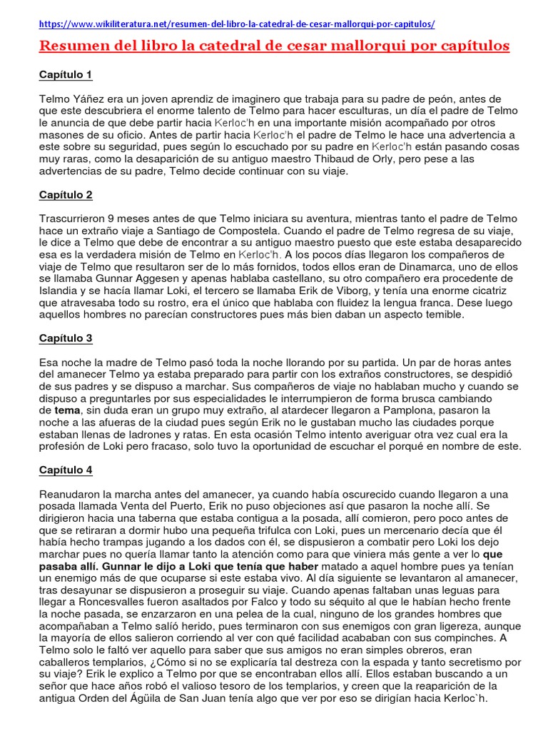 La Catedral Libro Cesar Mallorqui Resumen Por Capitulos – Libros actualizado