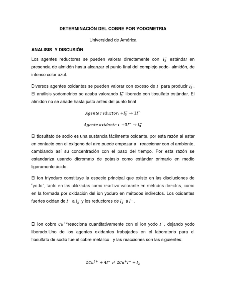Discusión DETERMINACION DE COBRE POR YODOMETRIA PDF viral