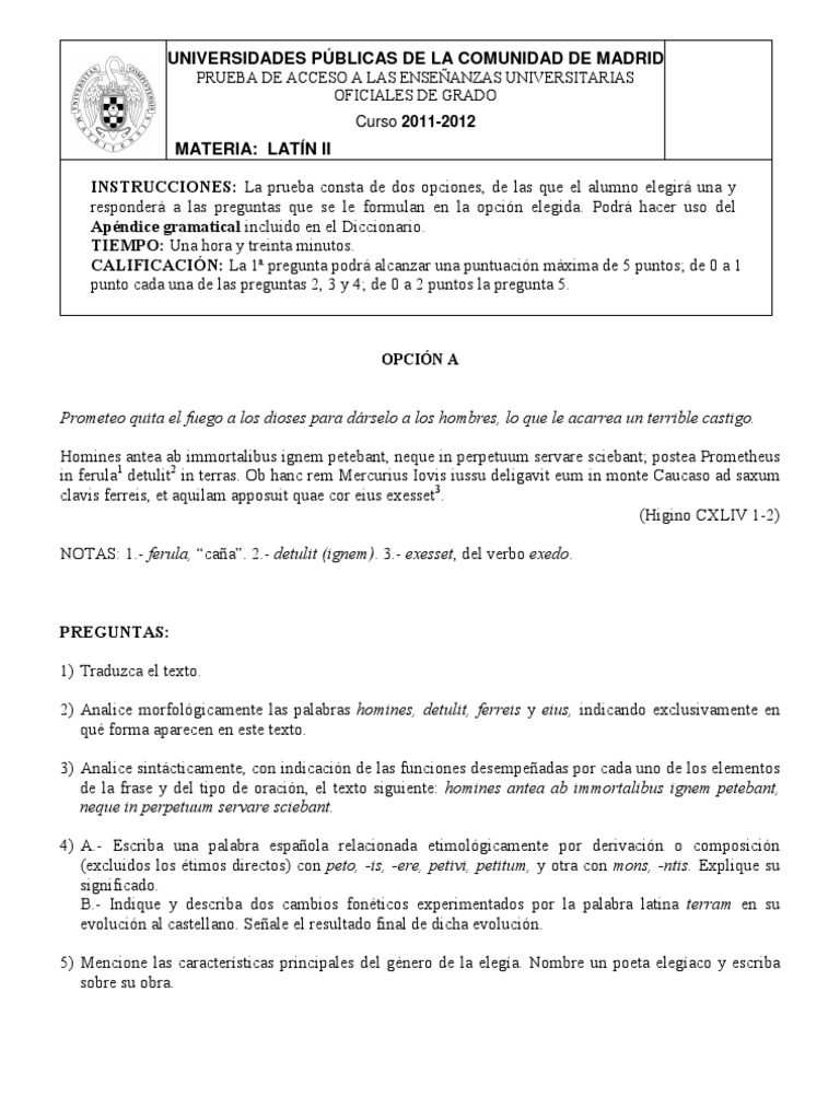 Imágenes Examen Selectividad Madrid Latín | PDF | latín | Palabra