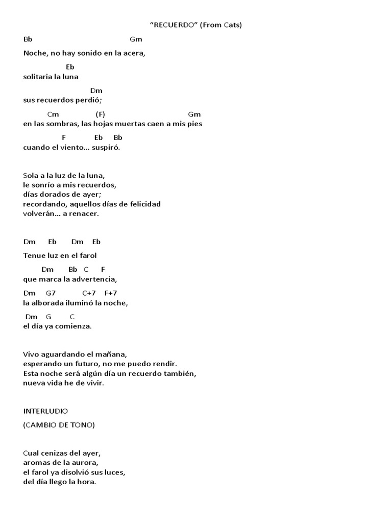 Artículos Memory (cats) letra y acordes en español Último