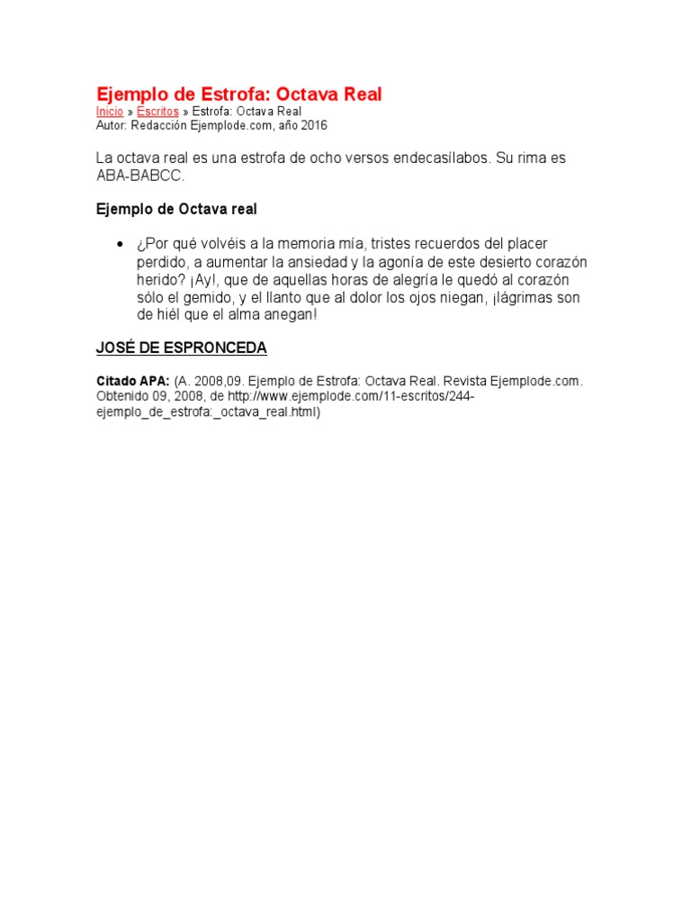 Ejemplo de Estrofa Octava Real | Forma poética | Fonética tendencias