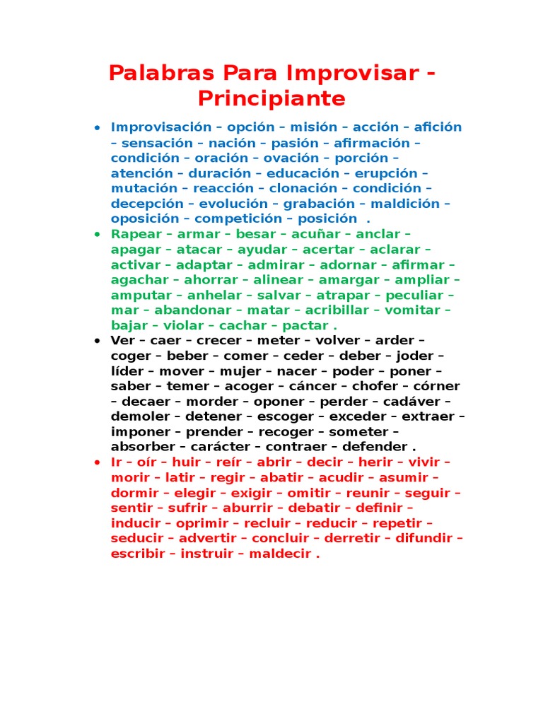 Palabras Para Improvisar