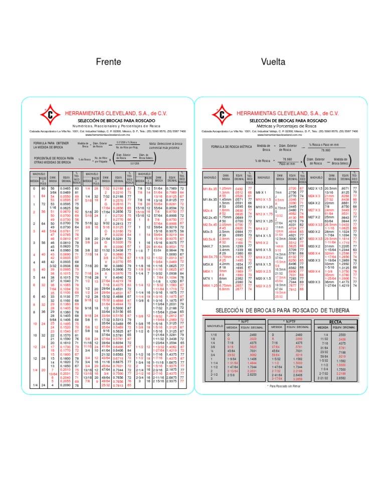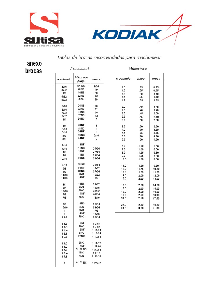 Actualmente – tabla de brocas para machuelos popular